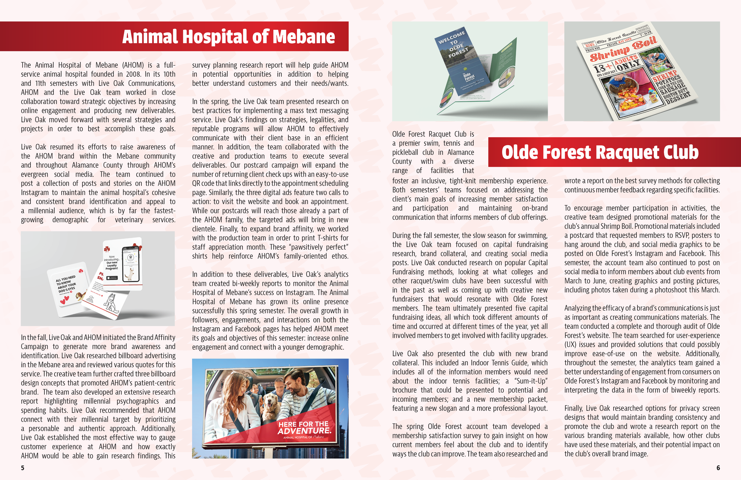 Select projects and deliverables created at Live Oak Communications: a student-run, award-winning advertising & PR agency in Elon, NC.